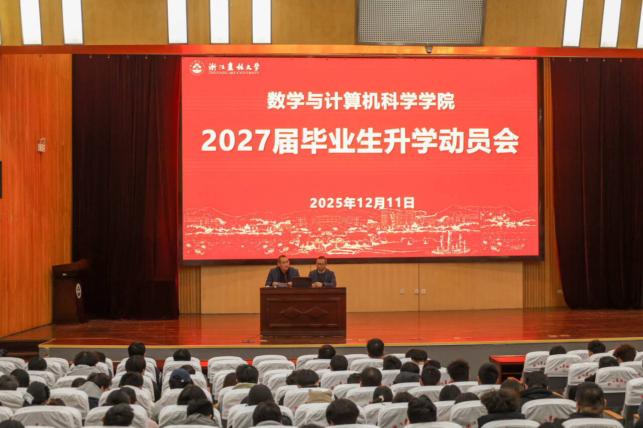 12月11日下午,数计学院在东湖校区图书馆第一报告厅召开2027届毕业生升学动员会。副院长张洪涛、学院5个学位点负责人、2023级全体本科生、学生办主任、年级辅导员参加本次会议。学院党委副书记孙晓民主持本次会议。