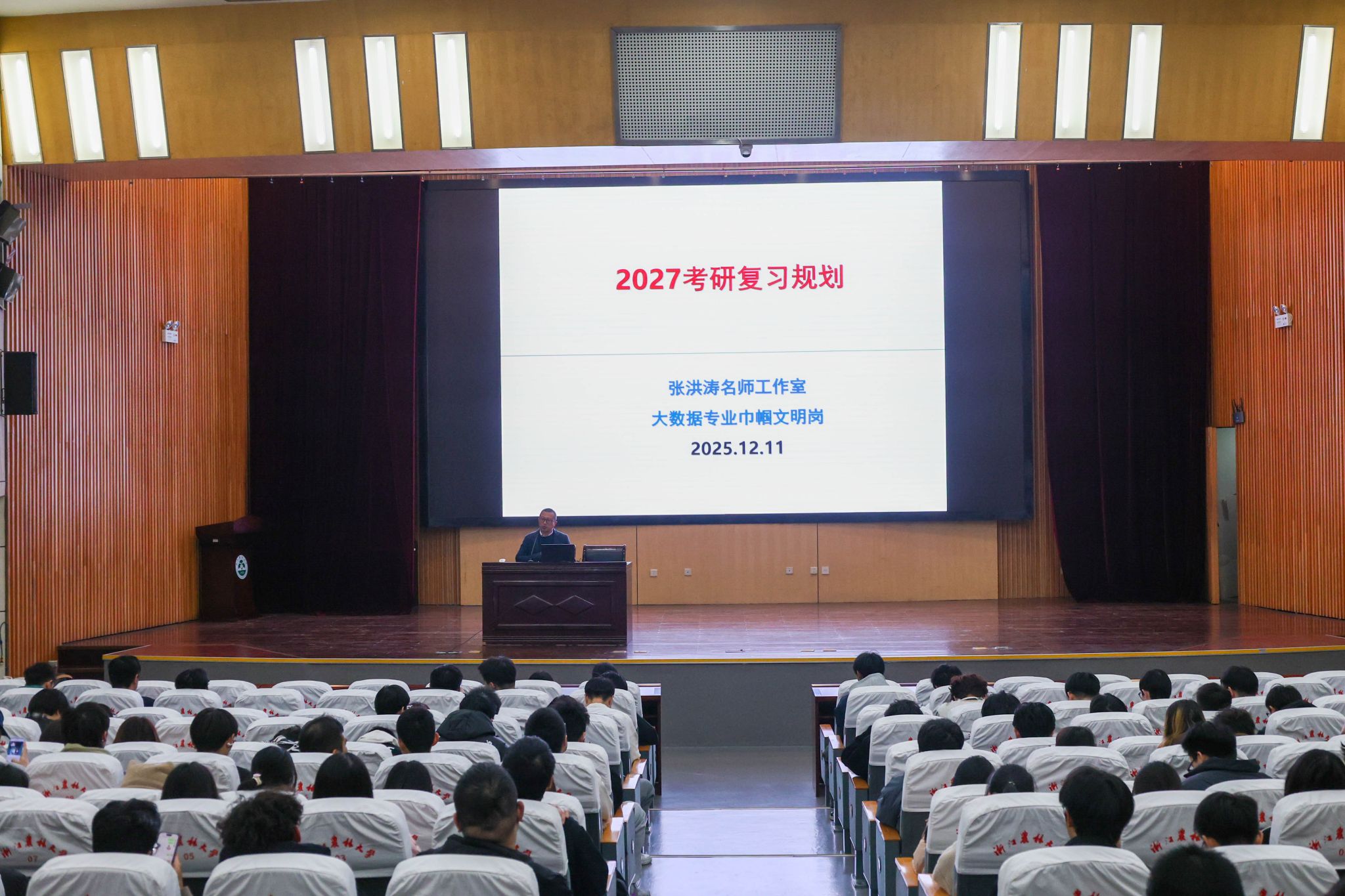 张洪涛为同学们作考研备考专题培训。他从考研政策动态、复习阶段规划、学科重点把握及备考心理调节等多个维度进行细致讲解,通过深入浅出的分析,助力同学们科学、稳健地走好考研之路。