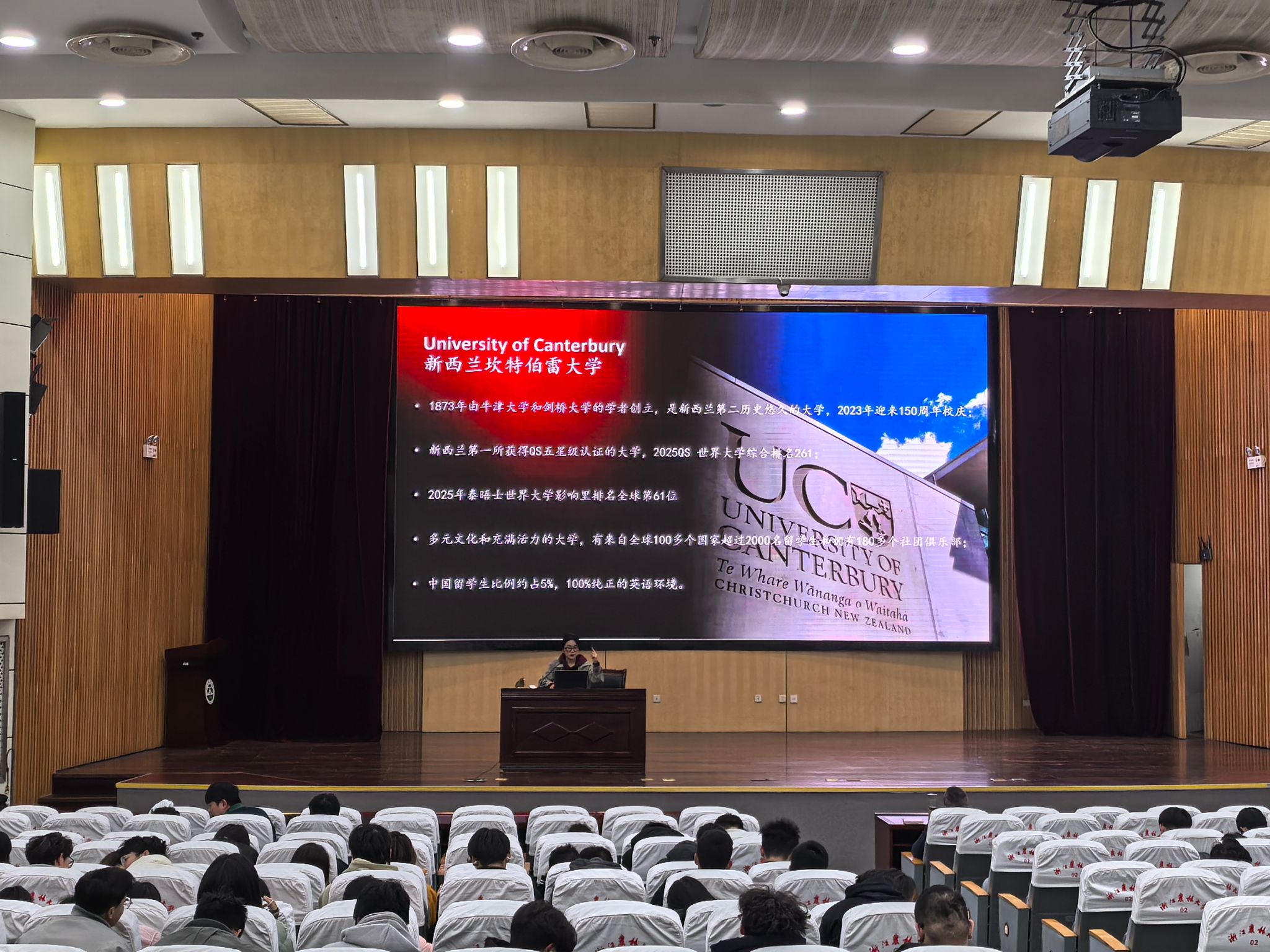 学院还特邀新西兰坎特伯雷大学上海项目协调办公室负责人Emma Xie老师,专题宣讲“3+1+1”本硕连读项目。她对项目合作模式、课程衔接机制、申请流程、学业支持体系及学历认证等关键信息进行全面解读,为有意向赴海外深造的同学提供了清晰、可靠的升学新途径。