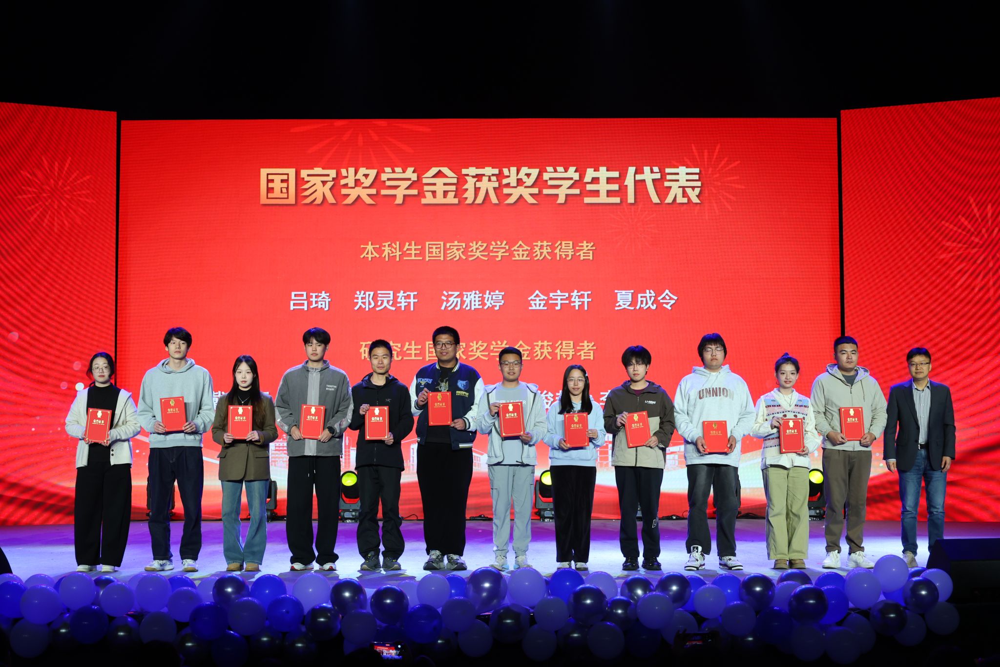 在庄重的颁奖环节,与会领导嘉宾为在学科竞赛、社会实践、志愿服务、文体活动、学风建设等领域表现优异的先进集体和个人代表颁发了荣誉证书。