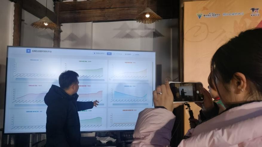 在村头镇,石畈村党支部书记、密坑源生态农业园负责人汪志军介绍了前期依托数学与计算机学院科研力量开展的园区建设以及“猪-蚓-鸡-桃”绿色循环链运行情况。该园区打造了覆盖“产—养—管—游”全链条的数字管理平台。基于农业生态园园区地形、功能区划和业态布局,构建了生态园可视化平台,可实现地图式点选视频直播展示猪舍及食料加工车间、种植区、养殖区、文化空间、停车场等区域状态,让管理者一屏掌握园区运行,让访客线上实现智能巡游。数计学院团队教师指出,该园区生猪健康动态监测系统主要基于热成像动态测温技术、异味监测技术和生猪饲食配比计算平台,形成生猪健康动态监测模型,构建起了一张覆盖全时段、多维度的“健康防护网”。一旦监测目标数据异常,系统便会自动向猪场管理人员发出预警。系统还为石畈村“认养一头猪”的“云养猪”新模式提供了技术基础,已有土猪被顾客成功认养。生猪健康动态监管的“小投入” ,切实带来了校地合作模式创新“大成效”。